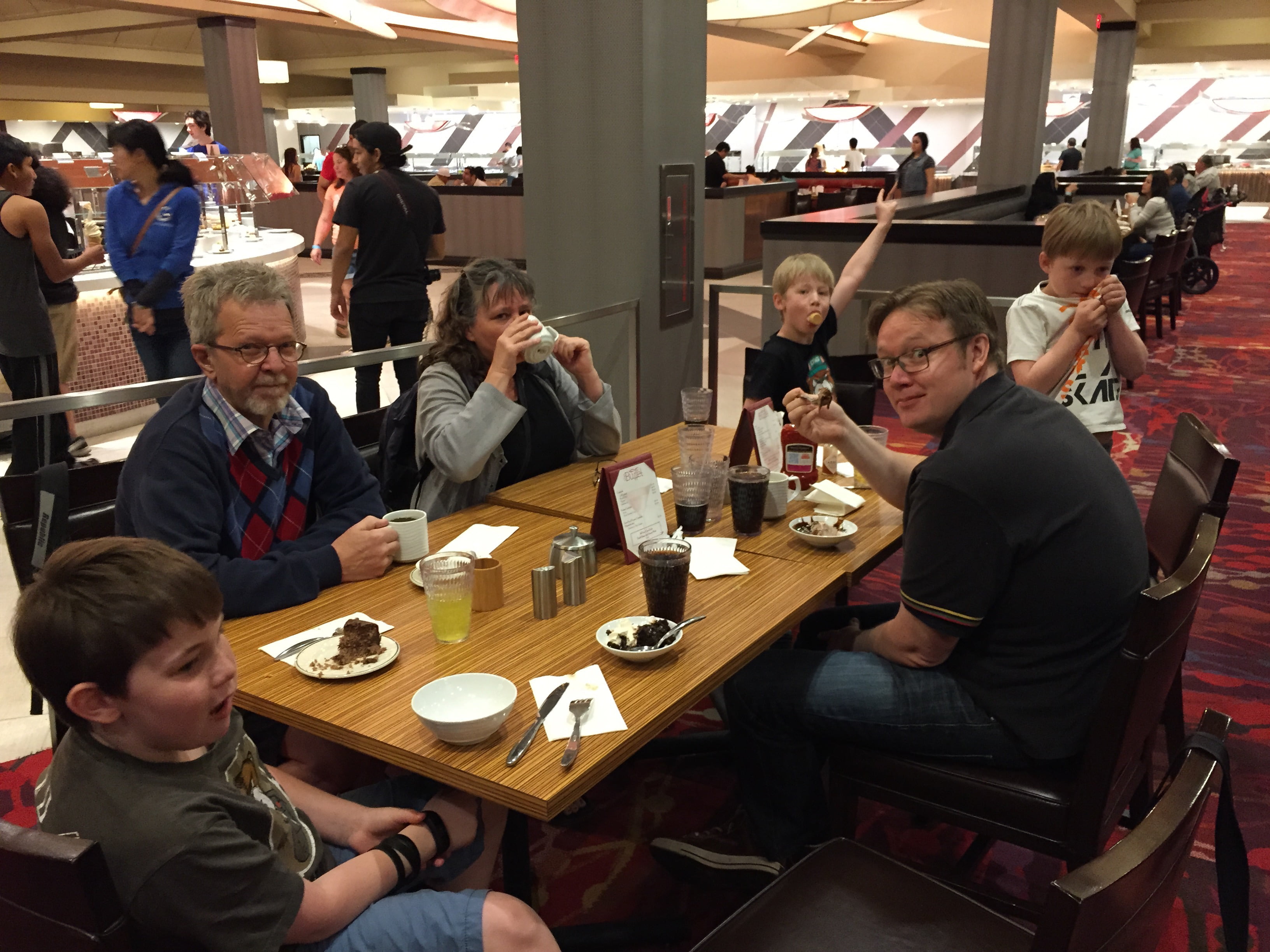 Klokken lidt i 11 gik vi over på nabo hotellet “Excalibur” som har en buffet der er kaldet “The Buffet”, så den måtte prøves. Buffeten bestod af en masse mad og en kæmpe dessert buffet. Selve maden var ok, der var massere at vælge i mellem, men ikke noget vildt fantastisk men udemærket. Derimod var desset buffeten ret imponerende, så den blev flittigt besøgt. Det vigtigste af alt – vi fik prøvet endnu en “must do” i Vegas :o)