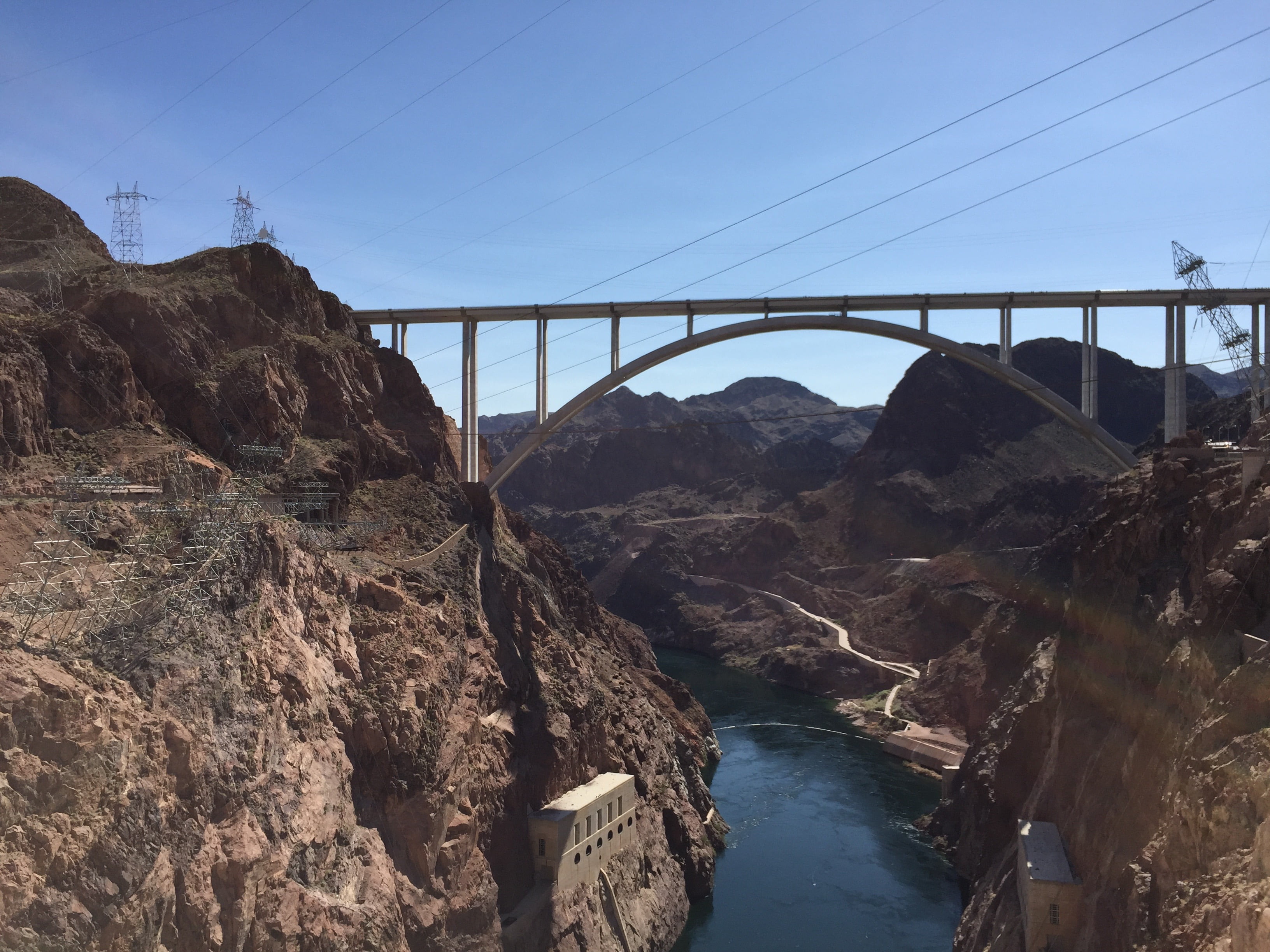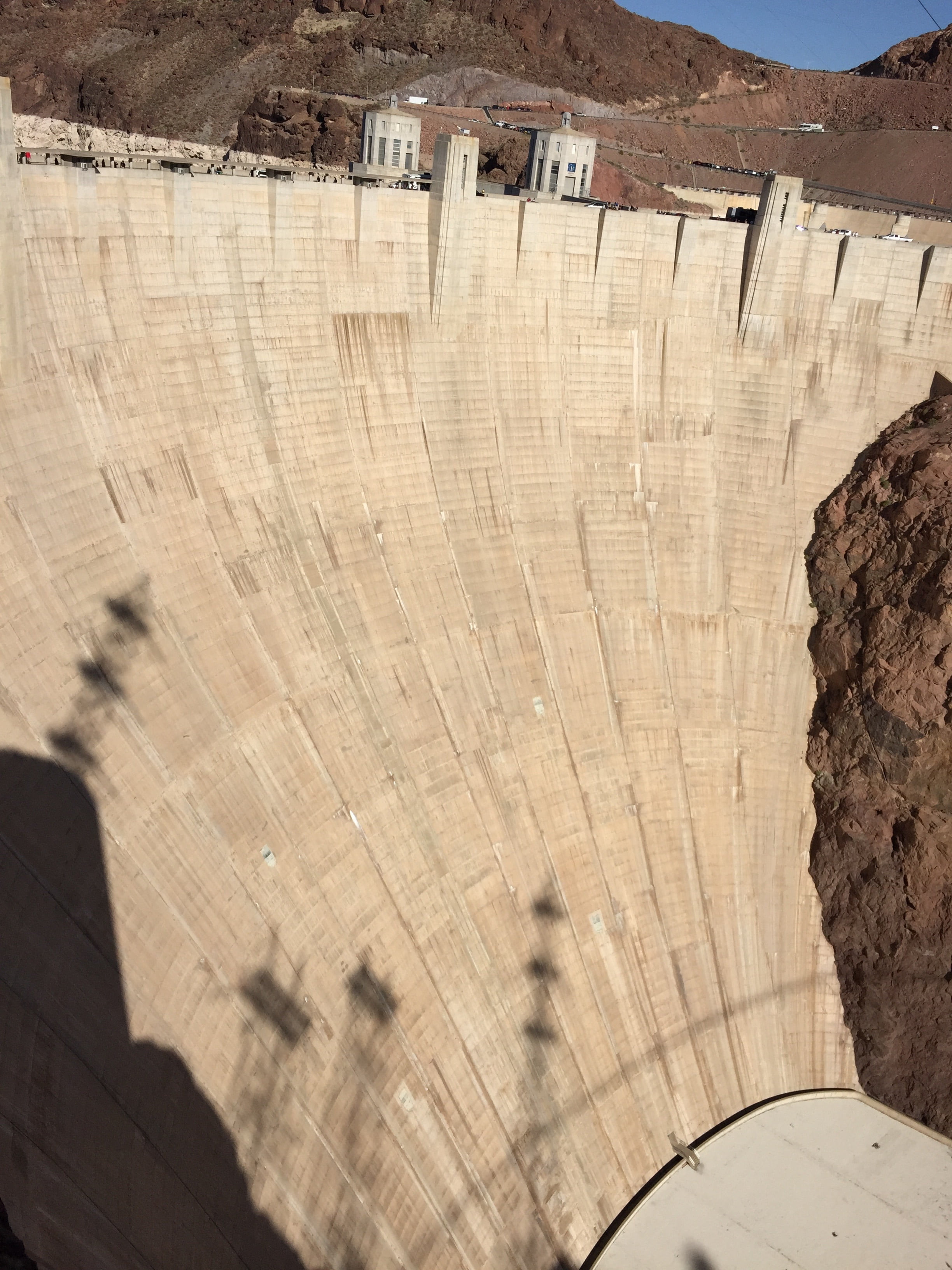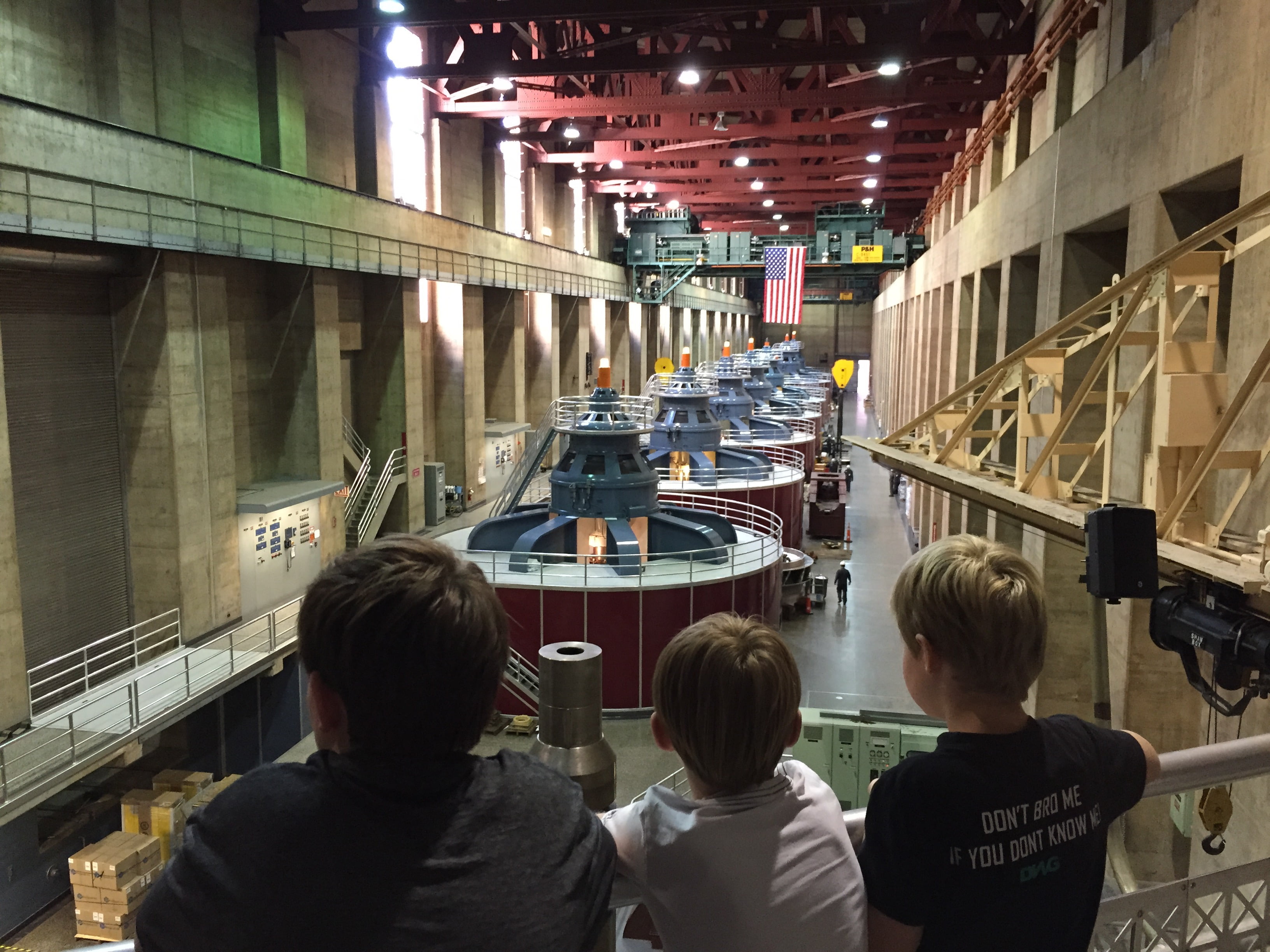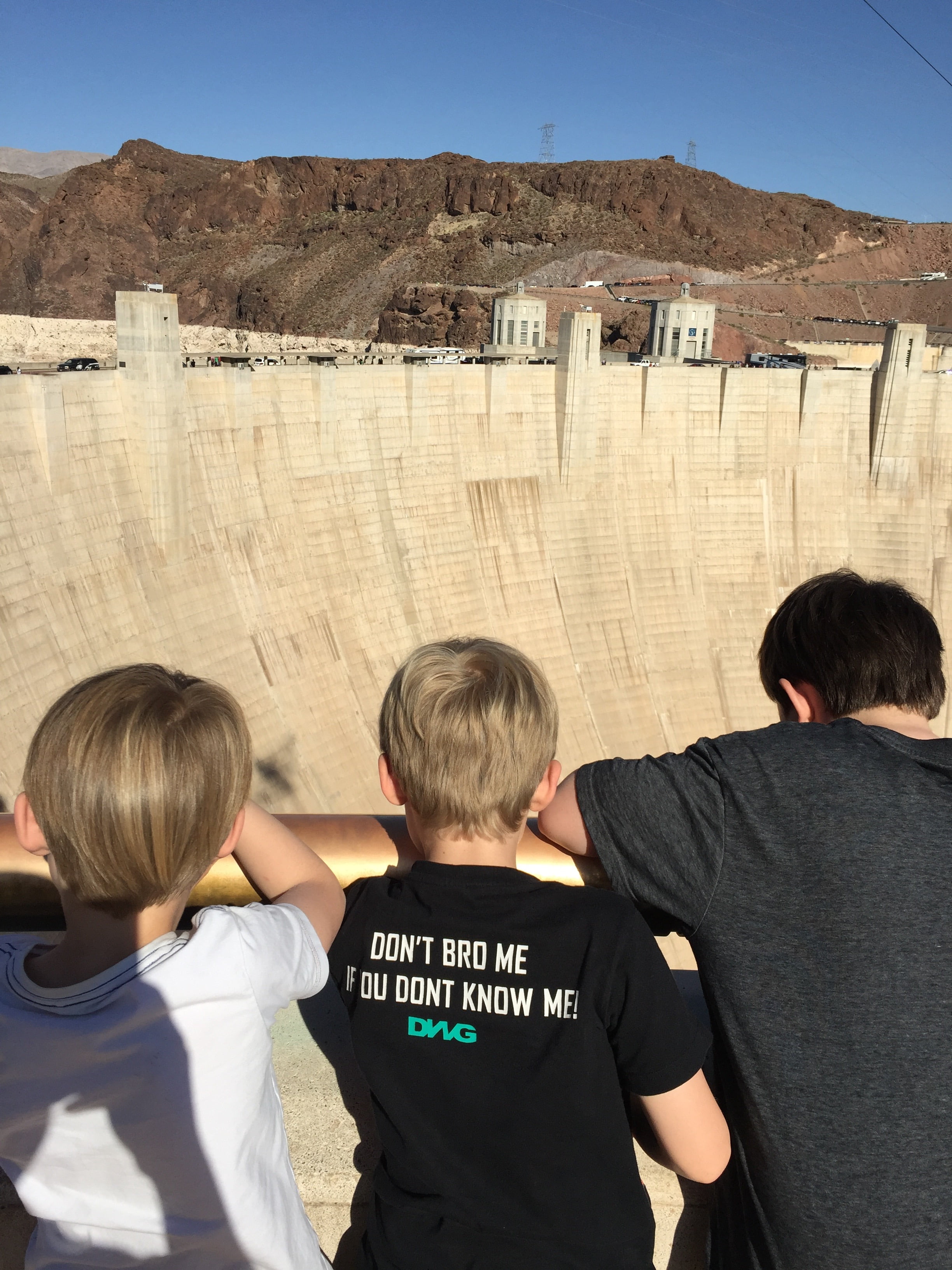 Hoover Dam er en kæmpe dæmning som blev bygget i slut 20erne og op i 30erne. Dæmningen er med til at sikre vand og strøm til store dele af de omlæggende stater. Byggeriet er imponerende og var vist lidt af et mesterstykke i sin tid. Efter en gå tur ud på dæmningen tog drengene og jeg på en rundvisning i selve dæmningen. Vi blev kørt med en elevator lagt ned under jorden og så en af de rør som vandet løber igennem og derefter blev vi kørt op for at se de store generatorer der producere strømmen. Altsammen ganske imponerende.