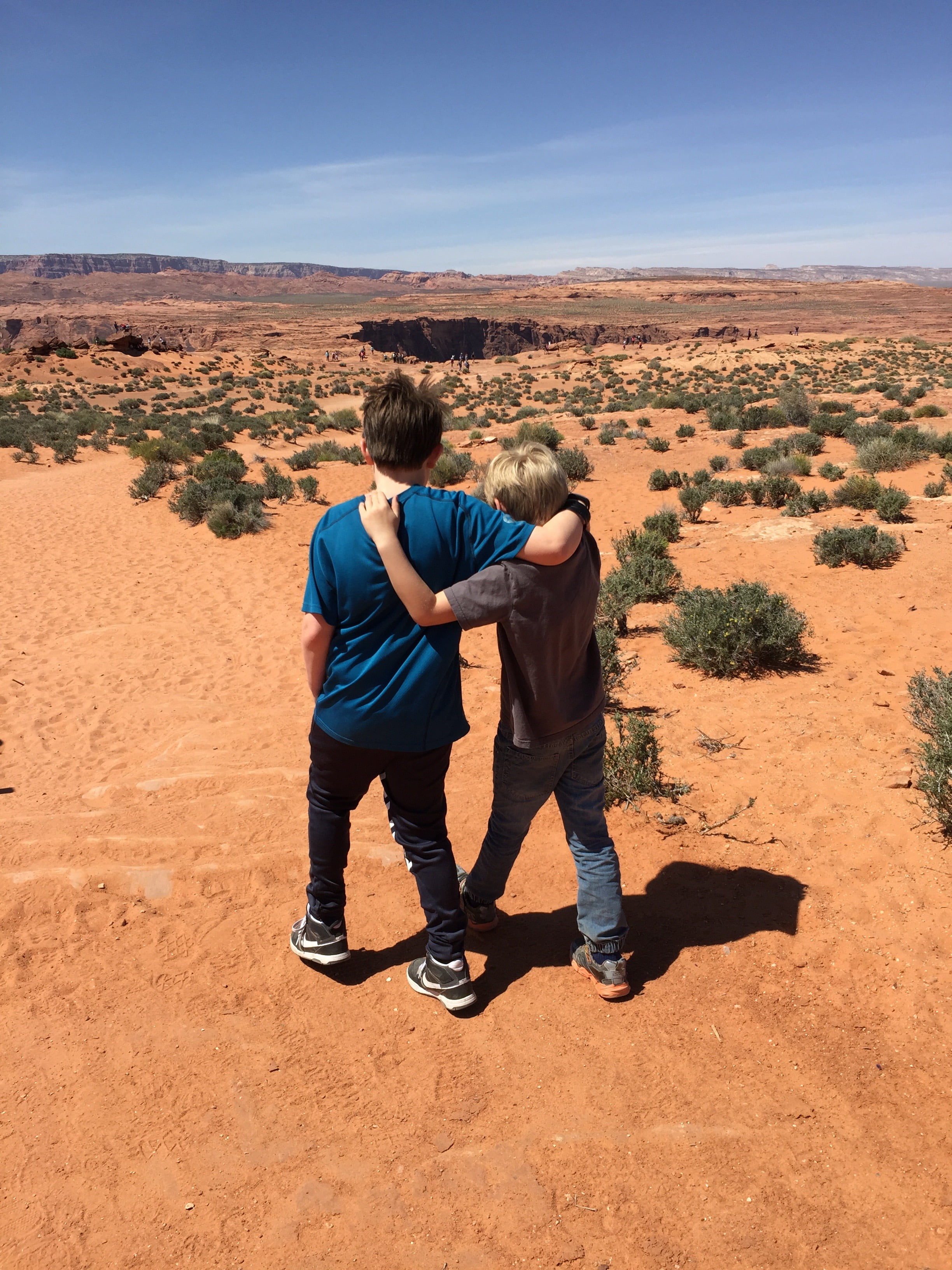 Vi tog herefter til en af de seværdigheder som jeg har set meget frem til “Horseshoe Bend” som er en utrolig flot kløft som er formet som en hestesko (så navnet giver ret god mening). Da vi ankom tog vi en hurtig “Suburban frokost” og gik derefter imod Horseshoe Bend. Det var en sti på ca 800 meter igennnem primært rødt sand. Bedstefar stoppede på en top ca ⅓ del af turen da han fortsat passer på sin ryg. Vi andre gik helt ned til kløften.