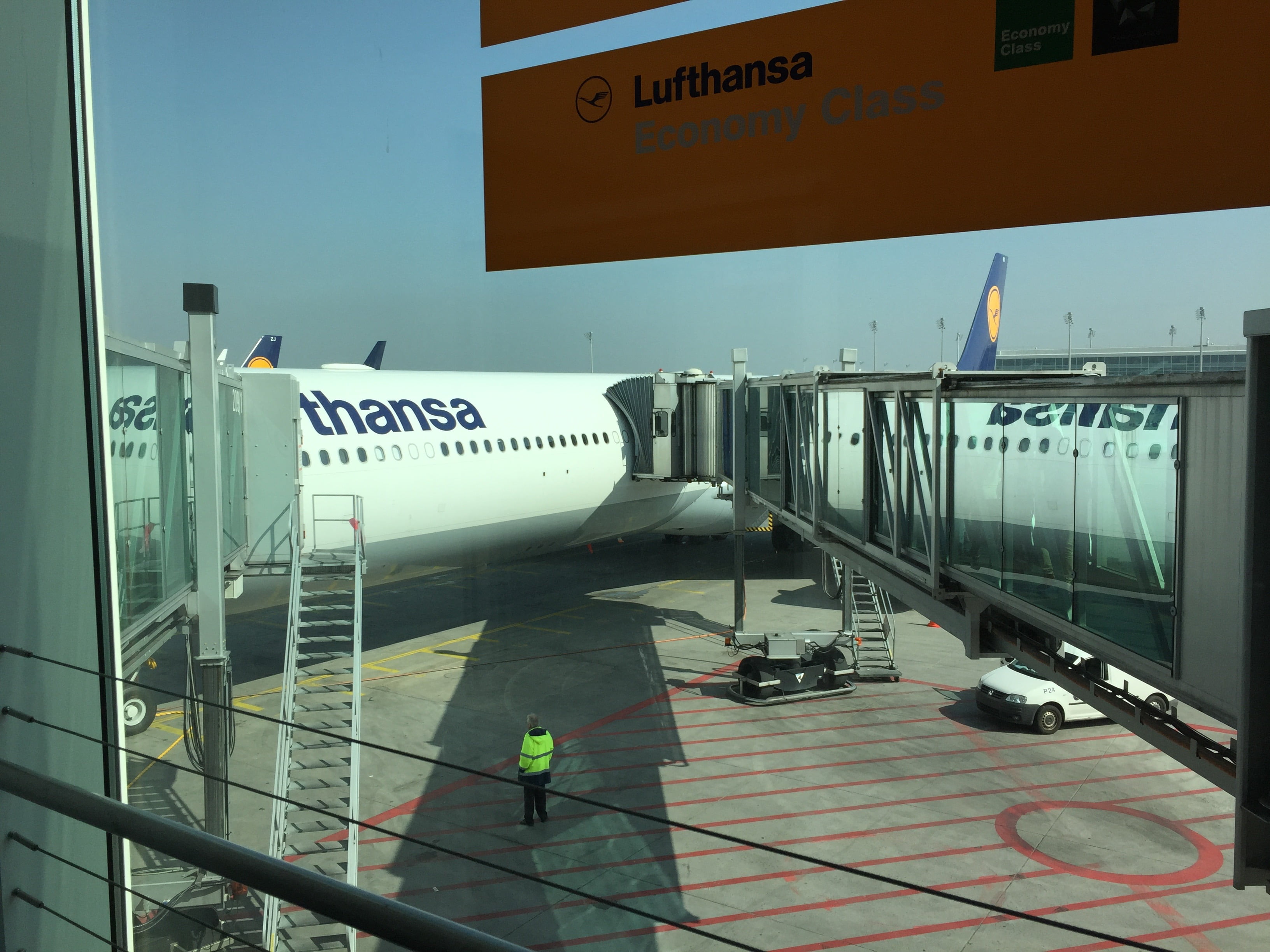 1 time og 40 minutter senere  landede vi i München. Her havde vi 1,5 time til flyet mod Los Angeles afgik. Det var rigeligt med tid og uden den store ventetid (Leif fandt så men også et sted hvor man kunne ryge.