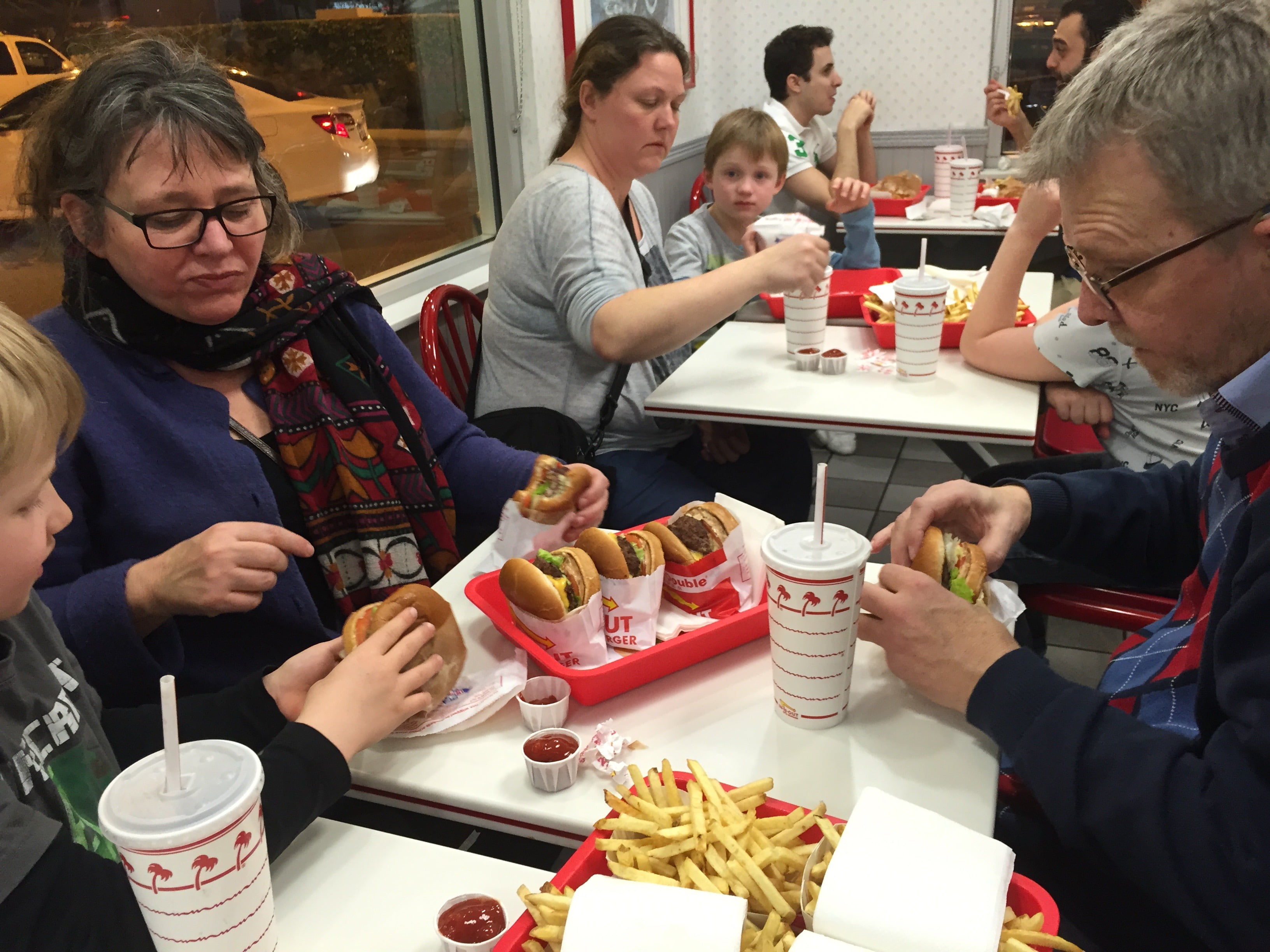Bedstefar (som jeg tror jeg vil kalde Leif fremover) kørte bilen til vores Hotel uden problemer. Vi har fået et par fine værelser, så her er alt godt. Herefter tog vi en tur med bilen til en In-N-Out Burger i nærheden og fik spist den første burger på vores tur. Jeg havde hørt rigtigt meget godt om In-N-Out Burger inden vi tog afsted, men så fantastisk var den nu ikke – jeg håber vi finder dem bedre en anden dag.